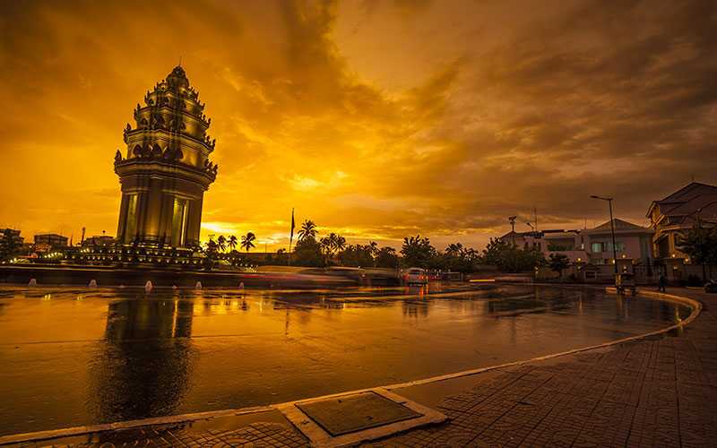 Phnom Penh es la bulliciosa y vibrante capital de Camboya. Situada en la confluencia de tres ríos, el poderoso Mekong, el Bassac y el gran Tonle Sap, lo que alguna vez se consideró la 'Gema' de Indochina. Se respira una especie de encanto provincial y tranquilidad con mansiones coloniales francesas y bulevares arbolados en medio de la monumental arquitectura de Angkor. Una mezcla de exótismo asiático y la famosa hospitalidad camboyana, espera a los visitantes de la capital del Reino de Camboya, unido a la excelente cocina camboyana como el Lap Khmer, el Bai sach chrouk o el sorprendente Nom banh chok. Las resplandecientes agujas del Palacio Real y la exquisita ubicación a orillas del poderoso Mekong: este es el gran regalo que le ofrece Phnom Penh.