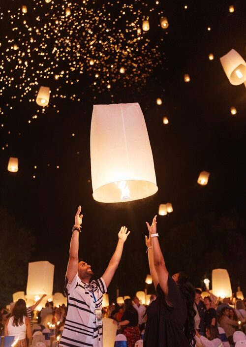 19.45: Comienza la ceremonia de lanzamiento de farolillos, bendiciones y farolillos flotantes al unísono.