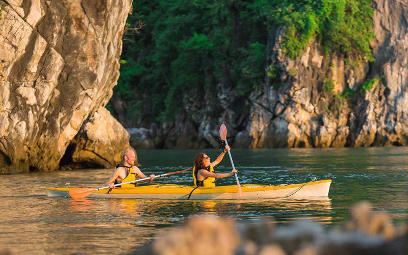 Los cruceros que actualmente navegan por la bahía de Halong proporciona diversas actividades de ocio. Por eso, pasar una o dos noches a bordo es una experiencia de lujo. Igual como los hoteles, los cruceros se categorizan en estrellas. Depende de la categoría de crucero, podría tener incluso jacuzzi en el baño privado de su cabina y el balcón con preciosa vista a la bahía.