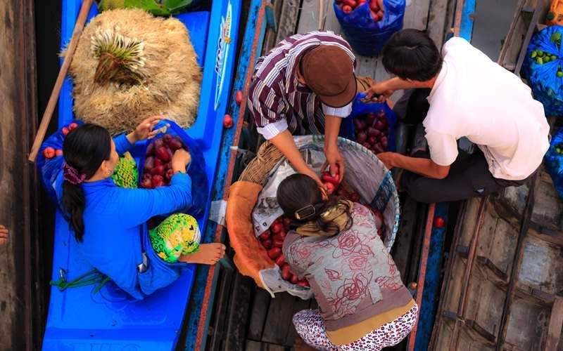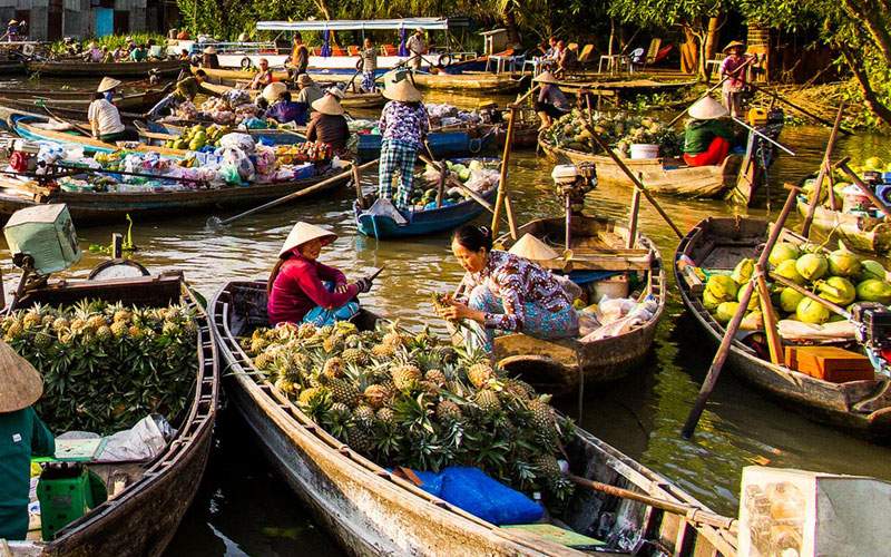 Al visitar el Delta del Mekong no va a encontrar restaurantes de platos internacionales, pero el río le ofrece sabrosos platos locales. Conocido por los inmensos arrozales y el laberinto de canales, el Delta del Mekong puede agradar el paladar a los viajeros con numerosas especialidades. Cabe destacar sus pescados asados con paja de arroz, ensalada con verduras autóctonas, aves salvajes, sopa de fideos My Tho, olla caliente de sopa con salsa de pescado.… La región también es famosa por los huertos de frutas tropicales como rambután, mango, mandarina, durián, coco… con mejor sabor que no puede encontrar en otra tierra del mundo.