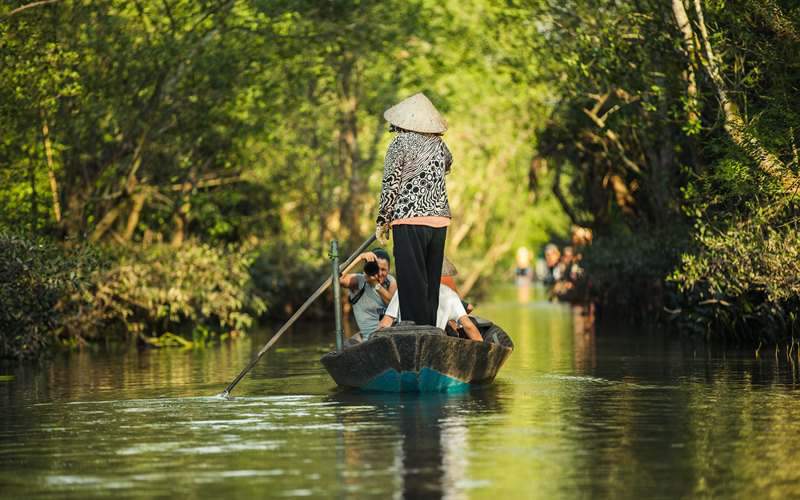 Explorar el Suroeste de Vietnam en la temporada de inundaciones de septiembre a noviembre también es interesante. Cuando el agua de la zona superior del río Mekong anega los campos de arroz, es el mejor momento para navegar por el bosque inundado de Tra Su.