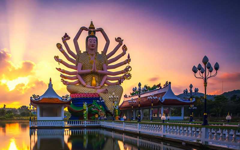 El Golfo de Tailandia alberga muchos destinos turísticos famosos, y Koh Samui, la isla ubicada en el lado oeste de la bahía no es una excepción. Koh Samui es atractiva con playas vírgenes rodeadas de palmeras, cocoteros a lo largo de la fina arena blanca y aguas cristalinas: Bophut, Chaweng Noi, Mae Name, Lamai y Taling Ngam. A lo largo de las playas de la isla hay muchos resorts, hoteles, spas, restaurantes, bares y discotecas, desde los más lujosos hasta los más asequibles. Además de las actividades acuáticas, se puede realizar trekking, montañismo, visitar el Pueblo Pesquero, el Santuario de Elefantes de Samui, el Parque Nacional Mu Ko Ang Thong, Tarnim and Magic Garden y templos budistas como Wat Plai Laem o Wat Phra Yai.