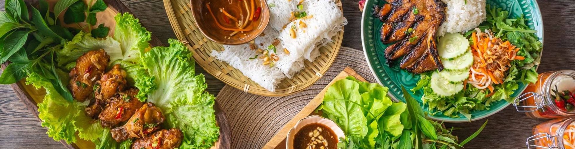 : Mergulhe os rolinhos de arroz no molho de peixe e saboreie com algumas ervas frescas. Os habitantes locais costumam comer banh cuon com “cha nuong” (carne de porco grelhada) ou “gio lua” (mortadela vietnamita).