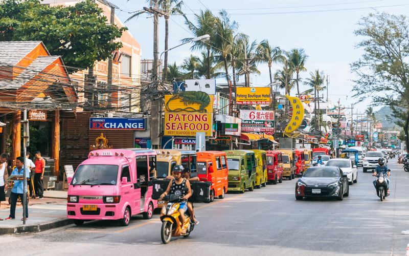 - De carro ou táxi: Do Aeroporto Internacional de Phuket, leva cerca de 1 hora de carro até a Bangla Road. Se você estiver saindo de Phuket Town, o trajeto dura entre 35 e 45 minutos, dependendo do trânsito.
