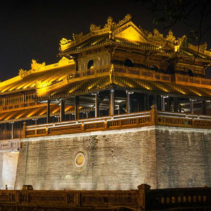 Hue foi a capital do Vietnã durante a dinastia de Nguyen a partir de 1802 até 1945. Conhecida pela sua arquitetura imperial com a antiga cidadela imperial e diversos túmulos reais, Hue está repleta de história e cultura. É muito conhecida pelo seu património arquitetónico, cujo conjunto de monumentos foi declarado Património da Humanidade pela Unesco em 1993. Os turistas terão que contemplar o pagode Thien Mu, símbolo de Hue e que foi construído em 1601 entre um rio e um pinhal, nas margens do famoso rio Perfume. A música real de Hue foi declarada Patrimônio Cultural Imaterial da Humanidade. Além disso, a gastronomia de Hue é famosa em todo o Vietnã, com pratos tradicionais como Bun Bo e Com Hen, entre outros.