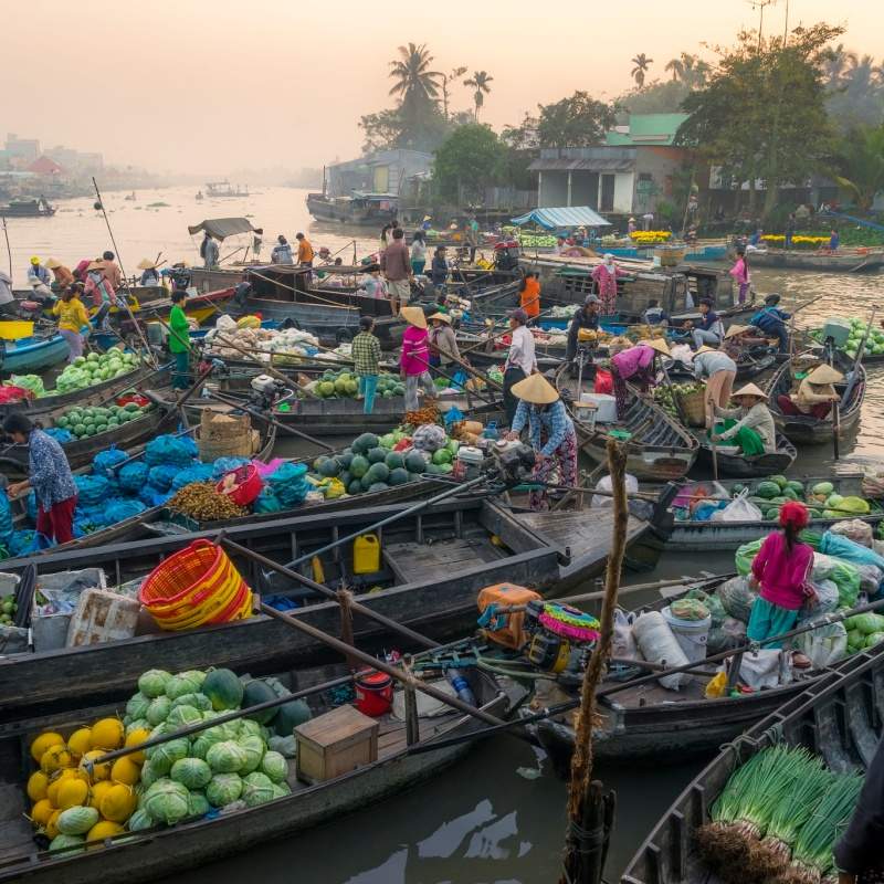 Embora o Delta do Mekong tenha 12 províncias diferentes, a rota mais comum é viajar da cidade de Ho Chi Minh para Can Tho, que abriga o conhecido mercado flutuante de Cai Rang. Aqui estão algumas sugestões para a sua viagem de 169 km.