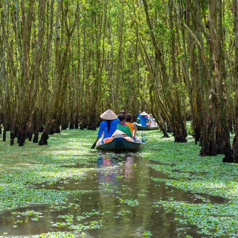 O Delta do Mekong, também chamado de Delta do Rio dos Nove Dragões, é conhecido como a tigela de arroz do Vietnã, pois lá estão enormes arrozais que se perdem de vista até a linha do horizonte. Também podem ser vistos inúmeros rios e canais com casas e mercados flutuantes criando uma paisagem pitoresca, que poderá ser apreciada em fascinantes passeios de barco. Um local de importância cultural e econômica para a região, que oferece diversas atrações turísticas.