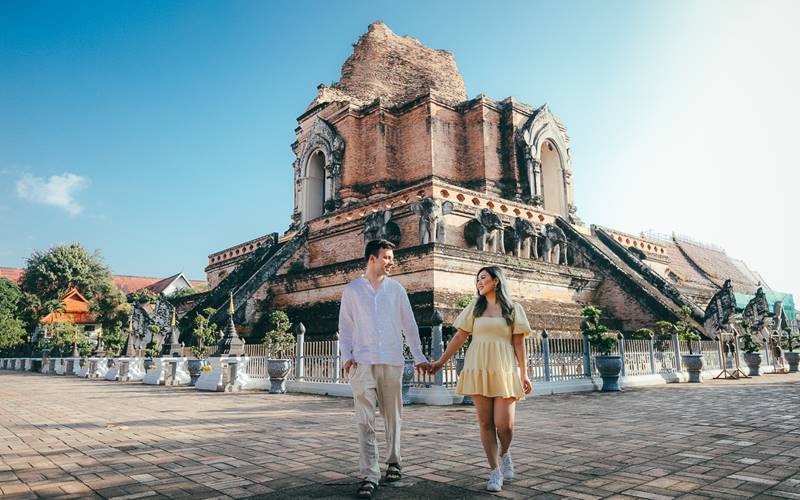 - Horário: Wat Chedi Luang está aberto todos os dias, das 8h00 às 18h00. Para evitar o sol forte e aproveitar um pôr do sol deslumbrante, recomenda-se visitar entre 16h. Esse também é o horário em que você pode participar da cerimônia de oração da noite.
