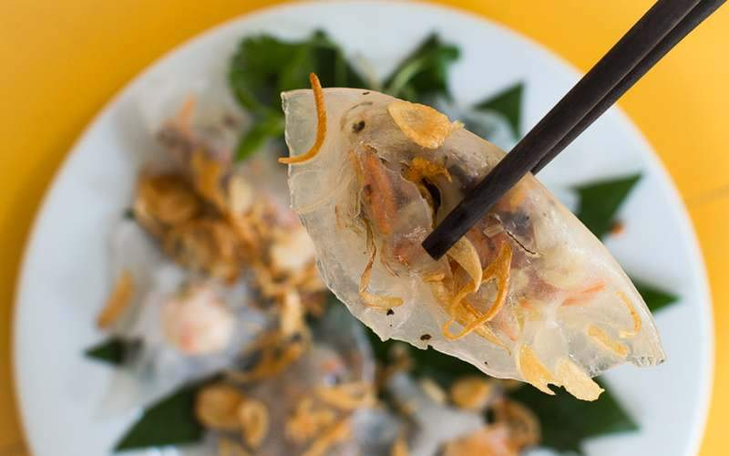 Banh quai vac: bolinho de farinha de arroz recheado com camarão, carne moída e cebolinha e depois levemente cozido no vapor ou frito. Esse é um prato famoso vendido nas ruas de Mui Ne.