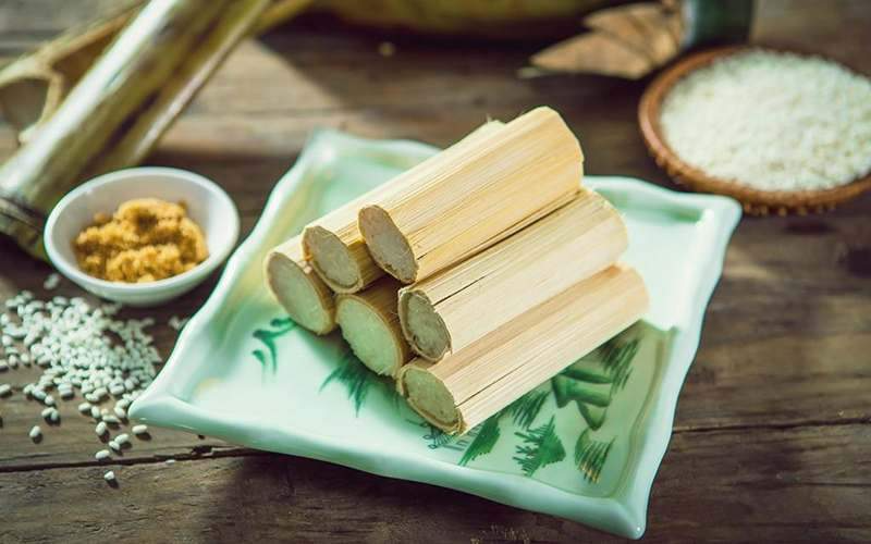 Com lam (arroz dentro de bambu): os cilindros de bambu são recheados com arroz e grelhados no carvão. Essa receita especial cria o sabor delicioso do Com Lam.