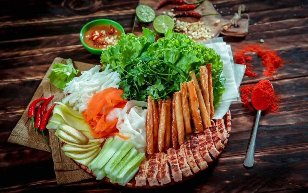 Pho cuon (Macarrão de arroz enrolado): É um rolo de crepe fino feito de arroz e recheado com camarão, carne de porco, cenoura, ervas e outros ingredientes. Normalmente, é comido junto com um molho especial para enriquecer o sabor.