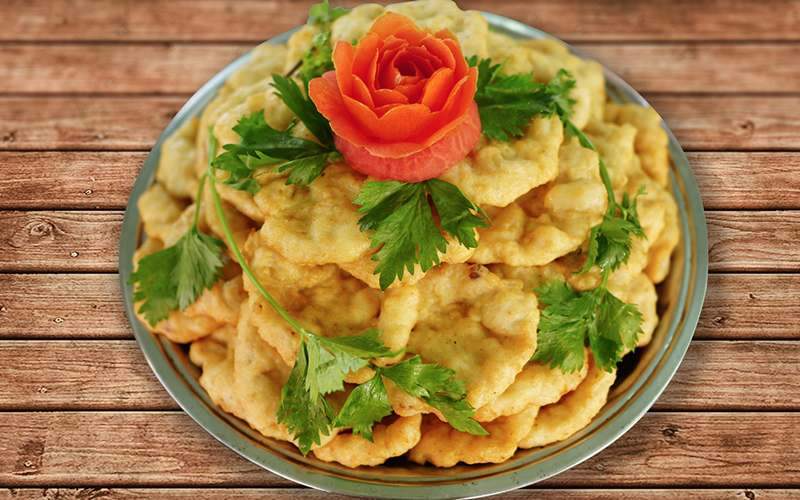 Cha muc: É feito com carne de lula processada até ficar pastosa, adiciona-se sal, pimenta e endro para dar sabor, e frita-se até que a carne tenha uma bela cor dourada.