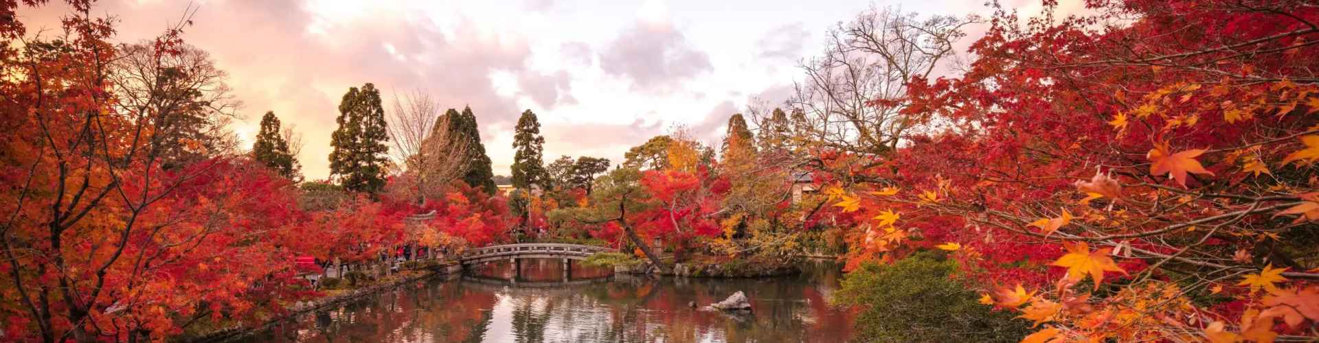 Sugestão: visite o Templo Kiyomizu-dera, o Jardim do Templo Eikando ou o Bosque de Arashiyama para apreciar toda a beleza da folhagem de outono.
