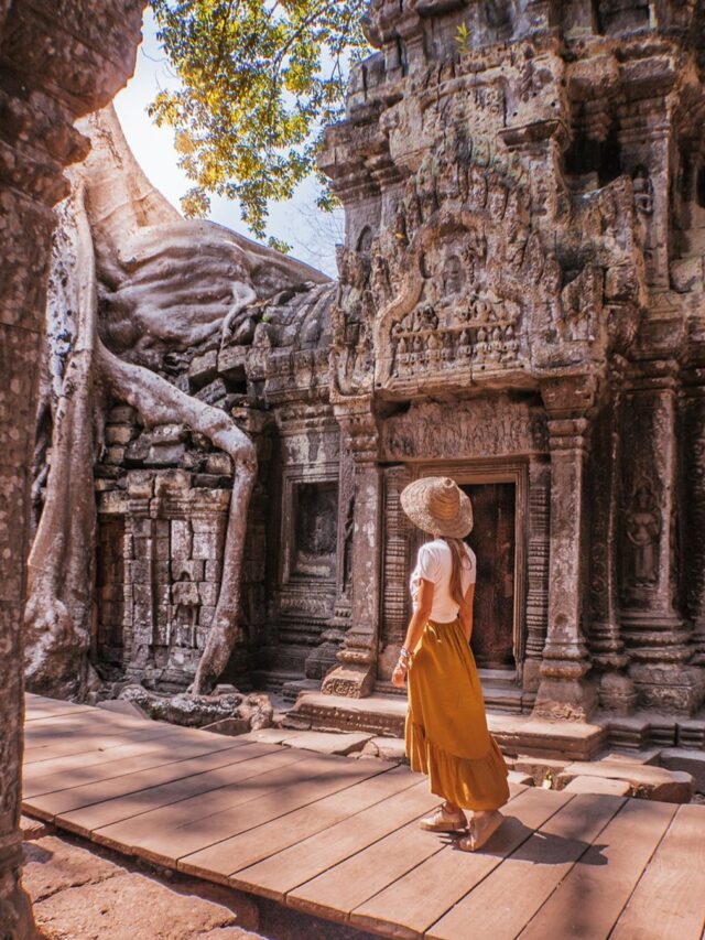 Ta Prohm – Endereço: Complexo de Angkor – Horário: 07h30 às 17h30 Conhecido pelas raízes gigantes envolvendo as ruínas. Tem atmosfera de selva mística e é um dos templos mais fotogênicos.