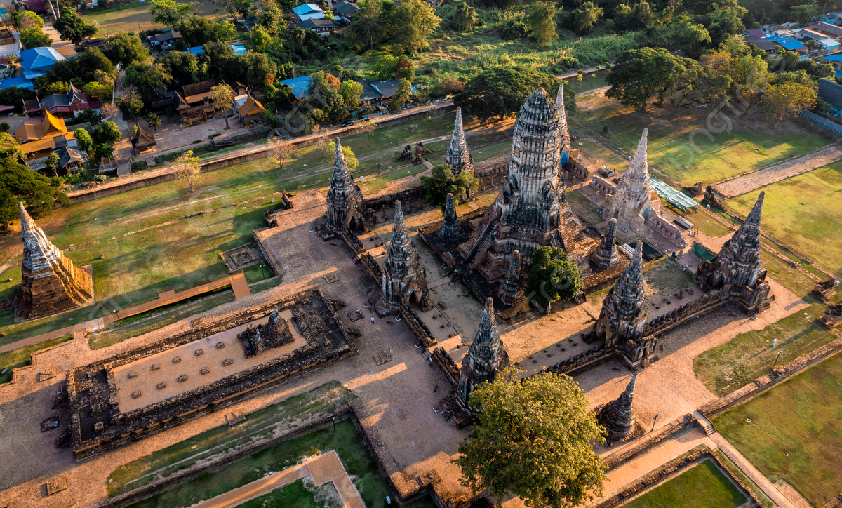 Templo Wat Chaiwatthanaram fica às margens do rio Chao Phraya, em frente ao antigo palácio real. Seu prang principal atinge 35m de altura, rodeado por prangs menores e chedis, formando um conjunto harmonioso que atrai visitantes e fotógrafos.
